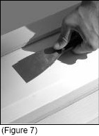 Clean the opening of any debris. Cover any holes made by the sash weights, pulleys, etc. Remove old screen hook eyes or other protruding fasteners. (See Figure 7)